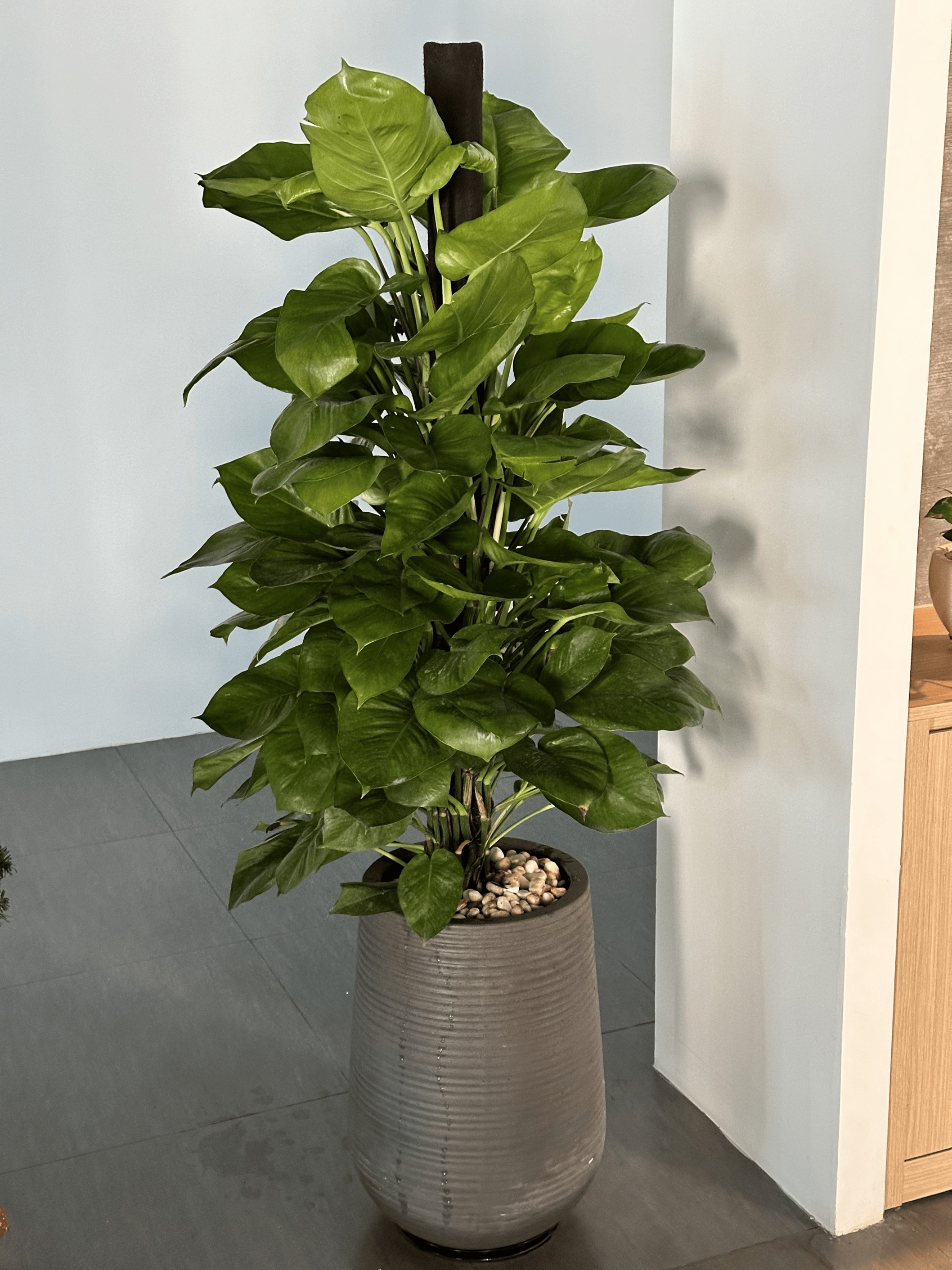Cây trầu bà leo cột có kích thước khá lớn, thường được trồng trong chậu để trang trí tại sảnh, hành lang, góc phòng, sân hoặc hiên nhà. Đặc biệt, tại các khách sạn, cơ quan và công ty, cây thường được đặt ở sảnh hoặc cửa chính. Sự hiện diện của cây trầu bà leo cột mang đến cảm giác tươi xanh, thanh bình cho không gian, giúp xua tan căng thẳng và tạo môi trường thư giãn cho người nhìn.
